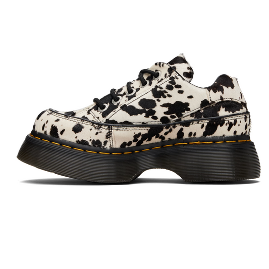 Dr. Martens Black & White Buzz 5-Eye Dalmatian Hair On Leather Derbys