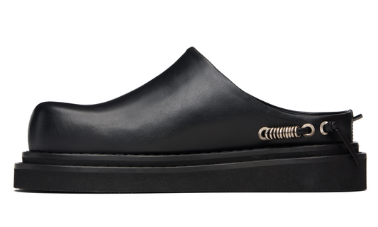 Toga Pulla Black Eyelet Metal Sabot Slippers